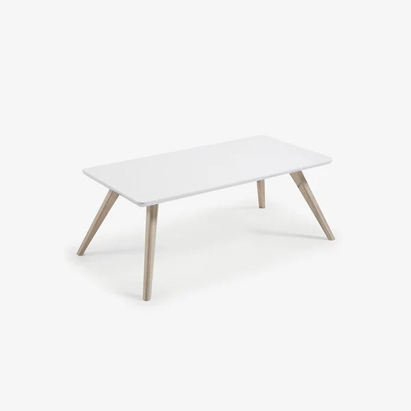 Sturdy Construction: Supported by four angled solid wood legs, the table ensures excellent stability and durability. The splayed leg design adds a dynamic visual element and increases structural integrity.
